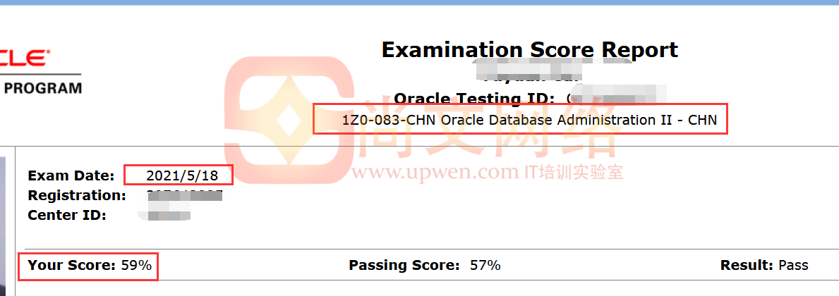 ORACLE考证-5.18号OCP 19C战报-083考试通过!