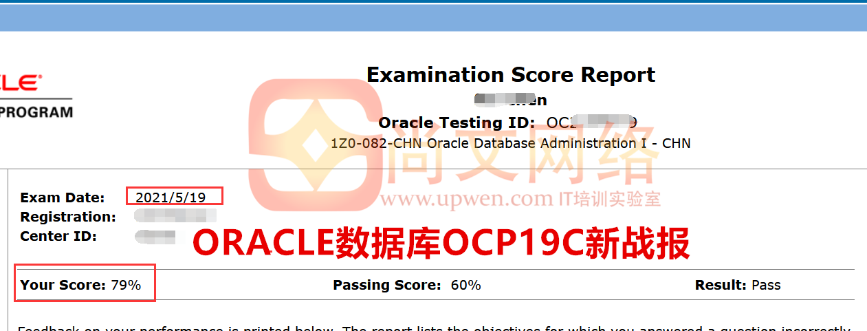 Oracle数据库OCP考试通过!19c 考试稳定!