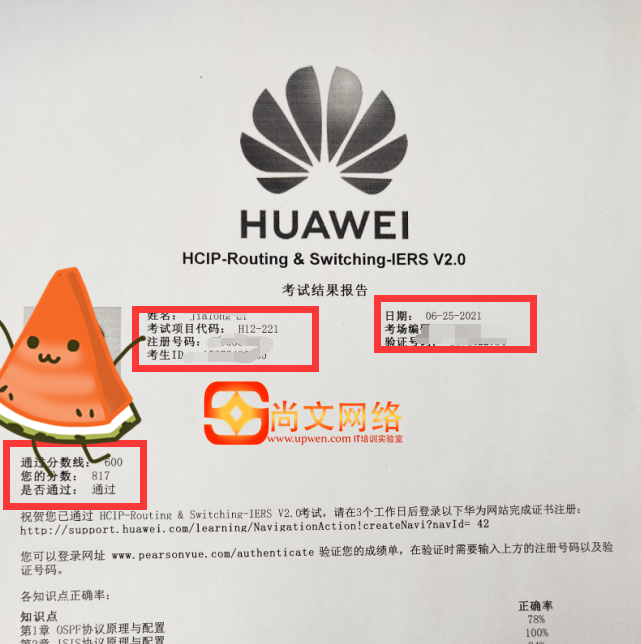6.21华为HCIP考试顺利通过!尚文网络的培训和辅导到位!