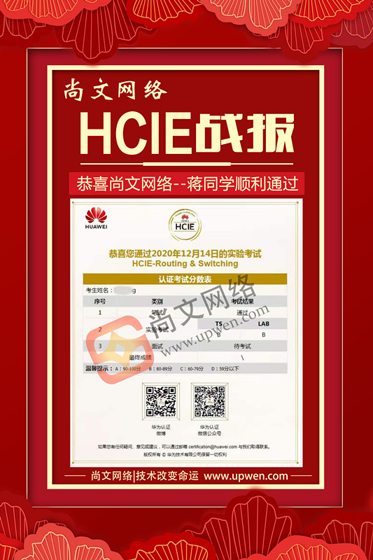 恭喜尚文网络姜学员,顺利通过HCIE考试!+QQ173245796 免费获取学习资源,免费试听