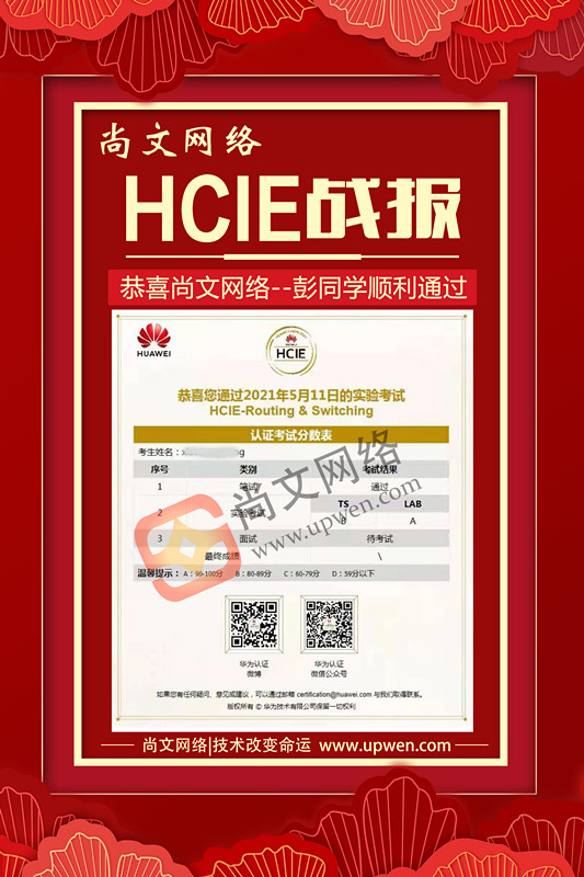 恭喜尚文网络刘学员,顺利通过HCIE考试!+QQ173245796 免费获取学习资源,免费试听