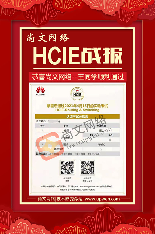 恭喜尚文网络王学员,顺利通过HCIE考试!+QQ173245796 免费获取学习资源,免费试听