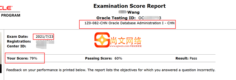 ORACLE考试:ORACLE 19C(083)考试通过!