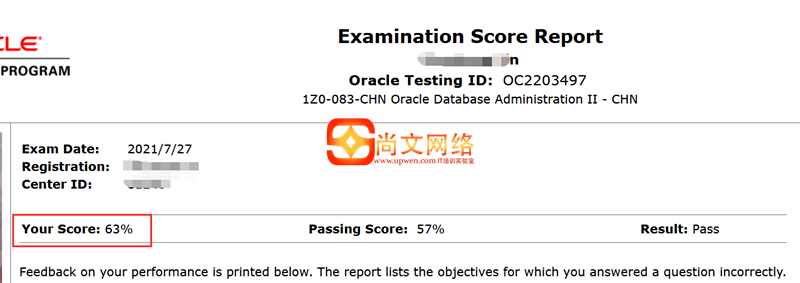 ORACLE考试:ORACLE 19C(083)考试通过!