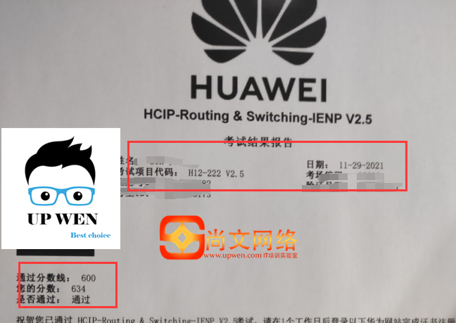 11.29号-HCIP考试222考试通过!【尚文网络UPWEN】