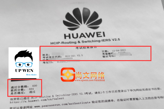 12.4号HCIP考试-221考试通过!884分【尚文网络UPWEN】