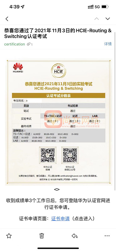 恭喜尚文网络张同学,新版版HCIE考试通过啦!