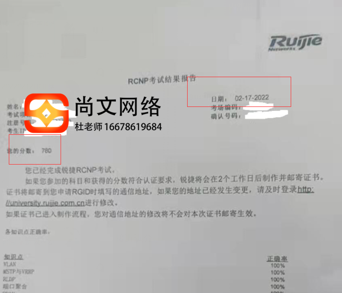 锐捷战报!锐捷题库|锐捷RCTE考试通过!