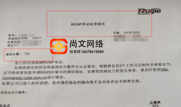 锐捷云考试!锐捷云计算考试通过!630分通过