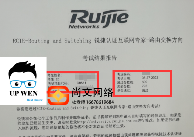 通过8.27号战报!锐捷RCIE考试795分稳定输出!
