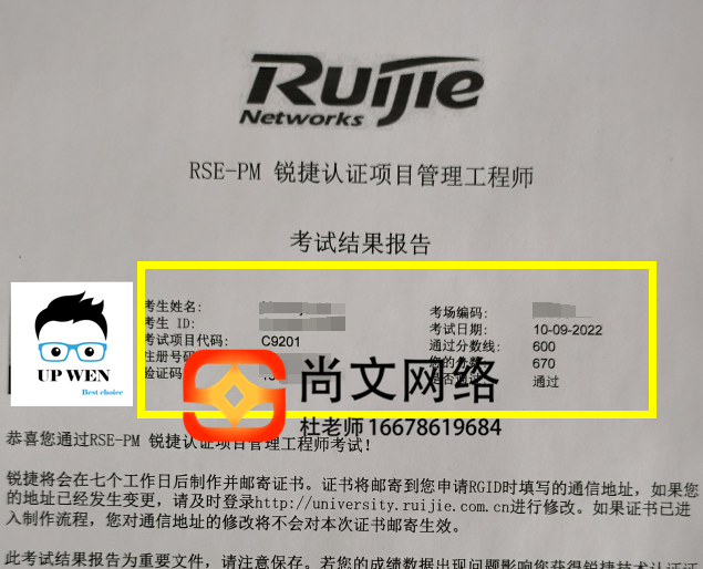 12.08号锐捷考试RCIE考试通过!770分稳定