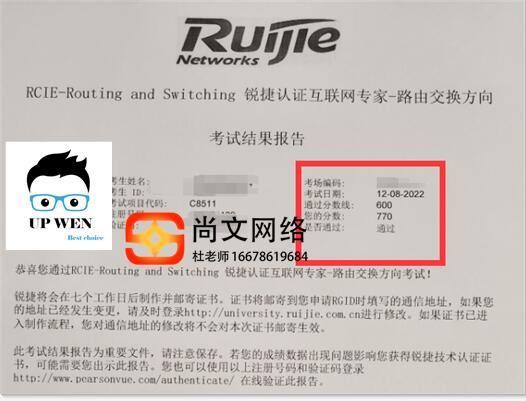 12.08号锐捷考试RCIE考试通过!770分稳定