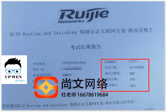 12.14号锐捷RCIE考试通过!全部一次通过!