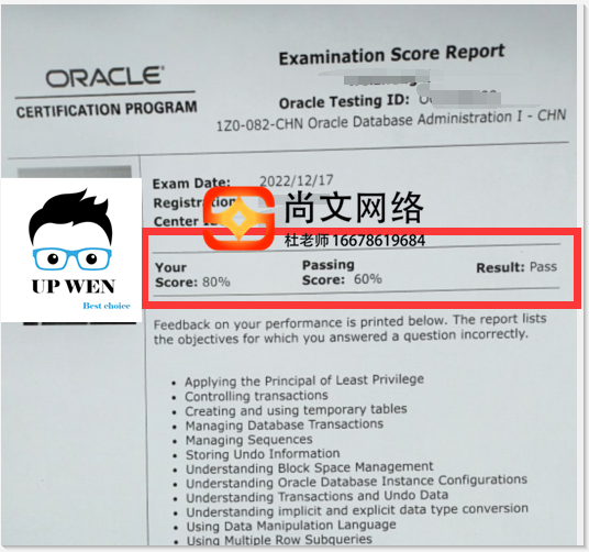 12.17号ORACLE数据库OCP考试通过