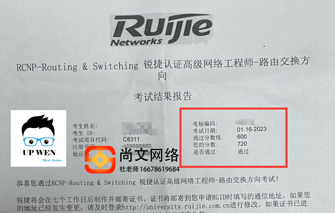 2023年1.16号锐捷RCNP考试通过!新资料独家【尚文网络】