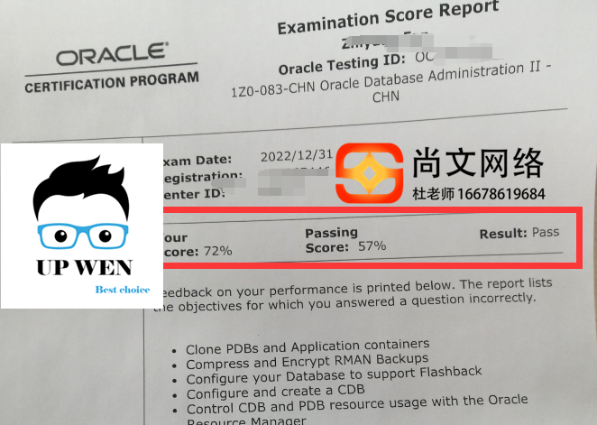 ORACLE数据库OCP考试通过2023年稳定【尚文网络】