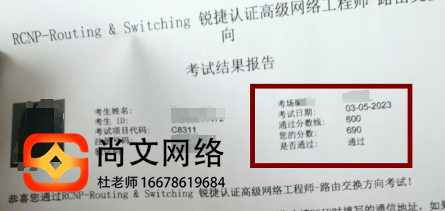 3.6号锐捷RCIE考试笔试通过,755分,稳定输出
