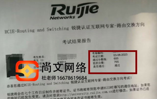 3.6号锐捷RCIE考试笔试通过,765分,稳定输出