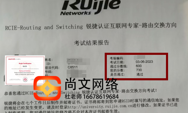 3.6号锐捷RCIE考试笔试通过,730分,稳定输出