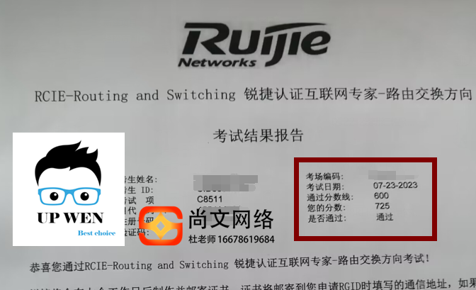 锐捷RCIE考试通过!725分,稳定