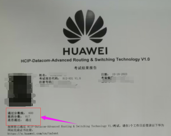 10.18号HCIP Datacom 831考试通过