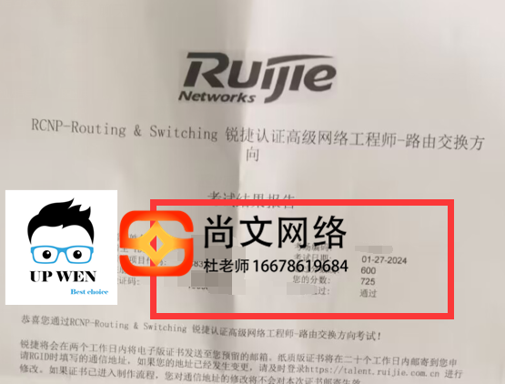 1.27号锐捷认证RCNP高级网络工程师通过!