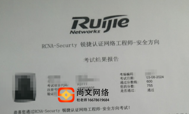 锐捷认证安全RCNA-Security考试通过!安全题库稳定755分
