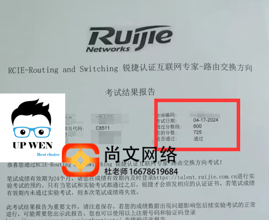 4.17号锐捷RCIE培训考试通过!725分稳定