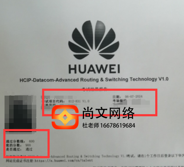 6.7号HCIP datacom考试通过,恭喜