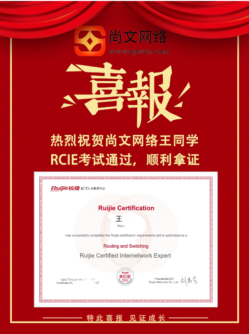 恭喜王学员RCIE-LAB考试通过,TOP727