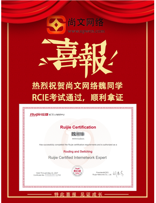 恭喜魏学员RCIE-LAB考试通过TOP722