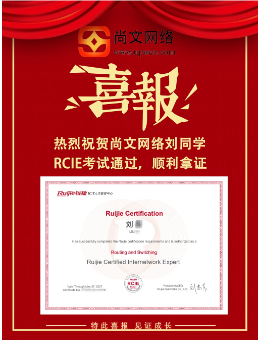 【尚文网络RCIE LAB 通过】祝贺刘同学RCIE LAB考试通过!TOP731