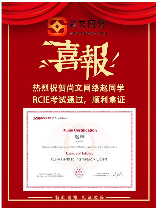 【尚文网络RCIE LAB 通过】祝贺赵同学RCIE LAB考试通过!TOP715