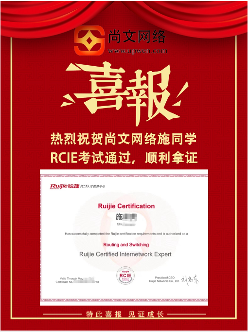 【尚文网络RCIE LAB 通过】祝贺施同学RCIE LAB考试通过!TOP748