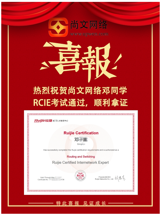 【尚文网络RCIE LAB 通过】祝贺邓同学RCIE LAB考试通过!TOP736