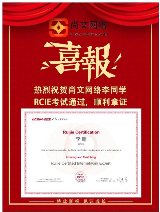 【尚文网络RCIE LAB 通过】祝贺李同学RCIE LAB考试通过!TOP741
