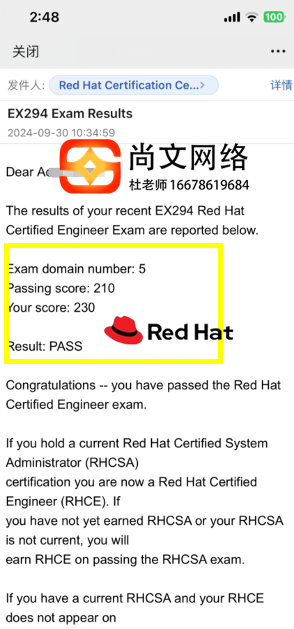 青岛红帽考场|RHCSA考试满分通过!RHCE满分通过!RHCA专家级全部通过!