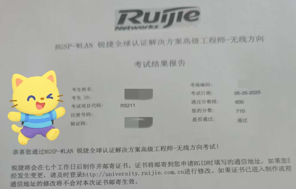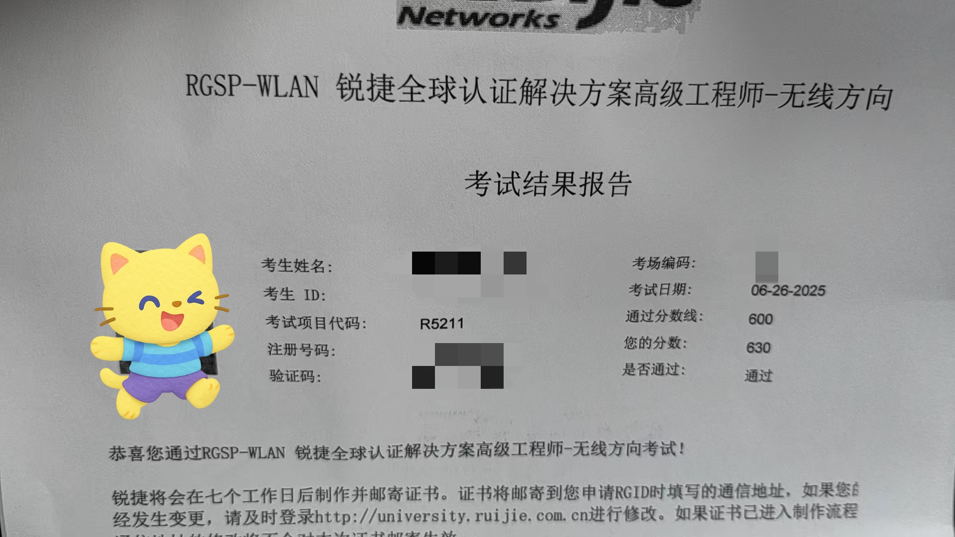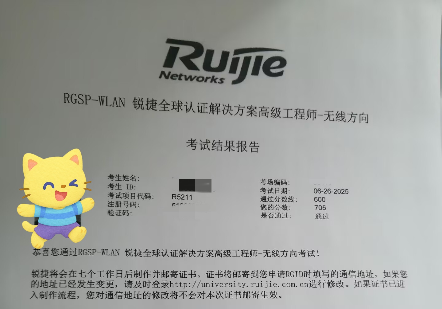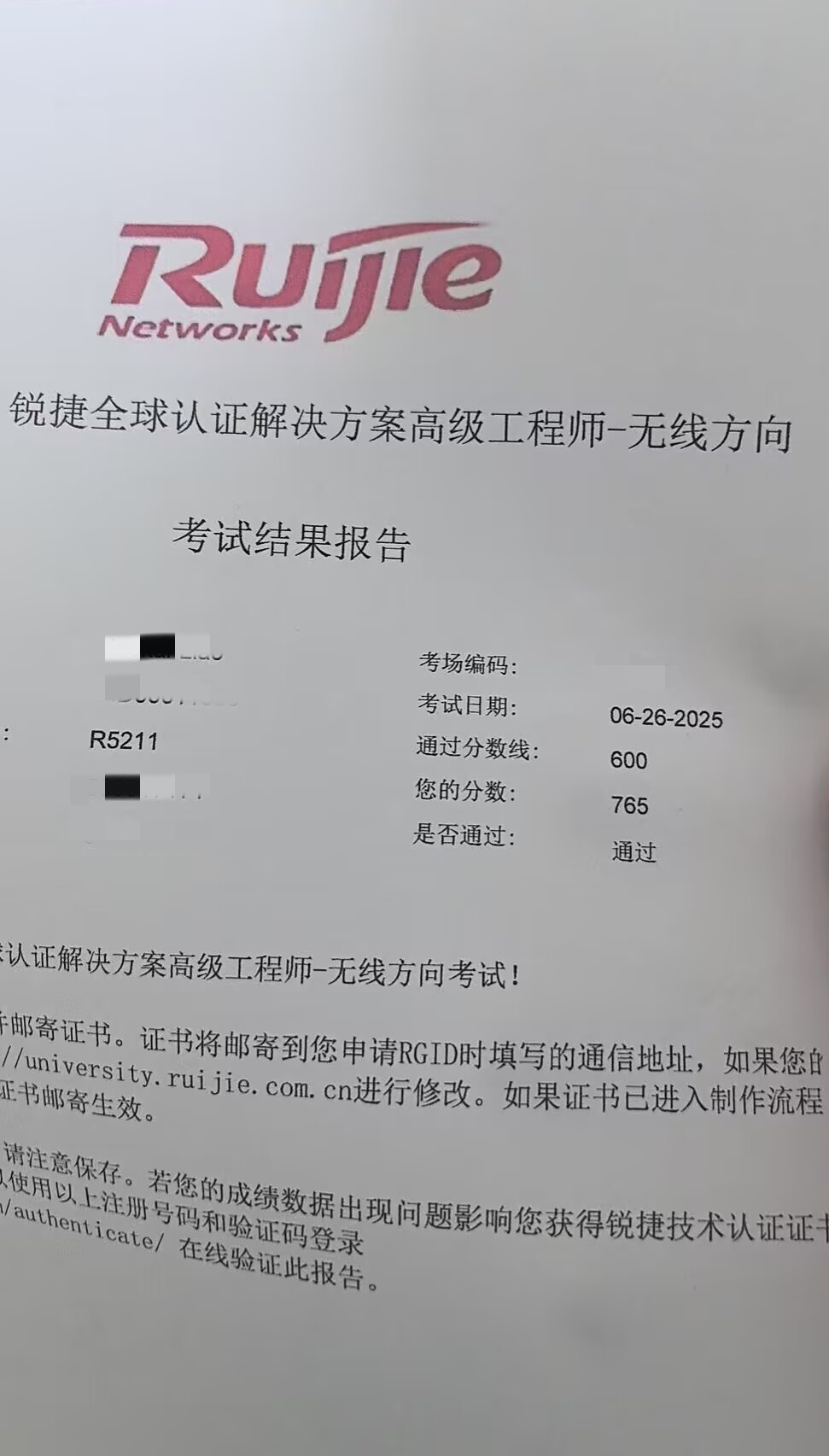 6.27号锐捷RGSA安全,RGSP无线考试通过!!!