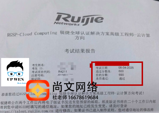 RGSP-Cloud云计算高级工程师考试通过8.4号690分
