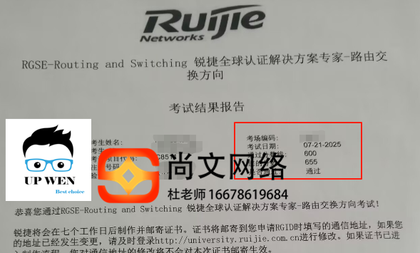 7.21号锐捷考试网络专家级工程师RGSE考试通过