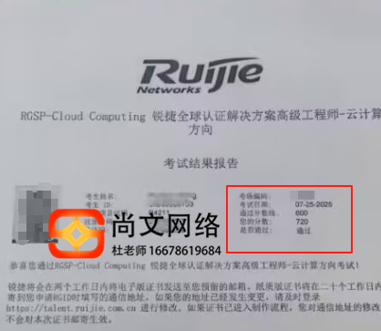 RGSP-Cloud云计算高级工程师考试通过7.25号720分