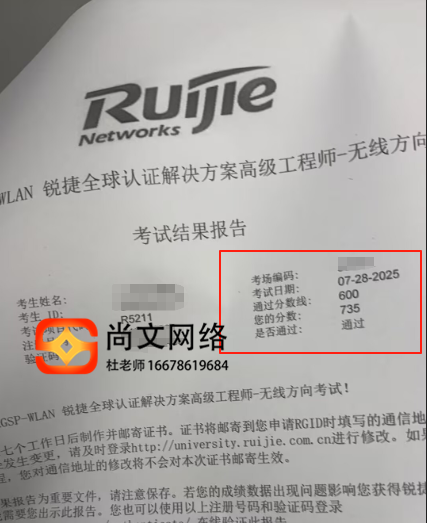 7.28号RGSP-WLAN锐捷无线考试通过735分