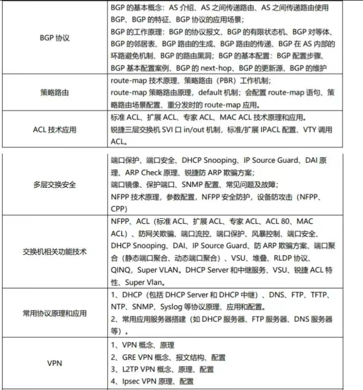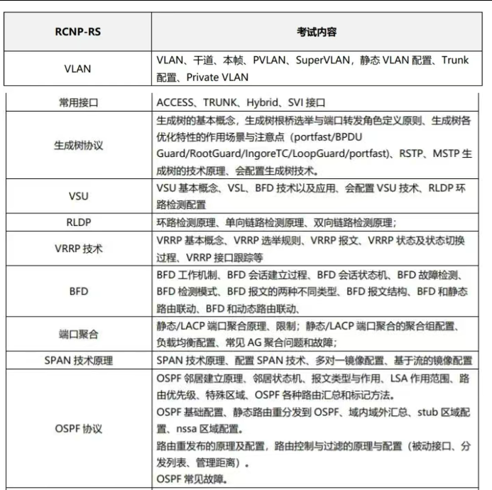 试题范围为锐捷 RCNA-RS(占比 30%)、RCNP-RS(占比 40%)、RCNA-Security (占比 10%)、RCNA-WLAN(占比 10%)、RCNP-WLAN(占比 10%)的知识点。