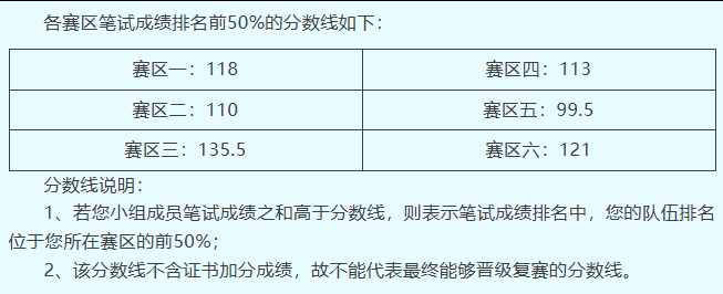 初赛晋级复赛以各大区为单位,大区内部进行排名,每个赛区初赛成绩排名前50%的队伍晋级复赛。
