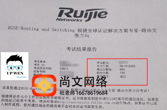 8.10号RGSE专家级网络工程师考试通过!锐捷考试RCIE考试735分
