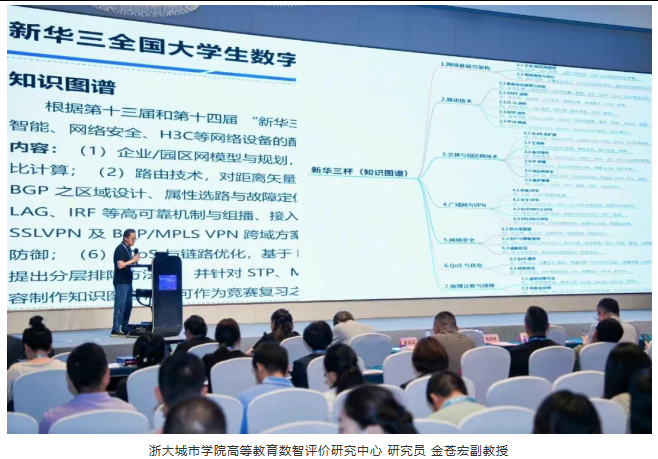 作为会议核心研究成果,由浙大城市学院高等教育数智评价研究中心联合相关单位自主研发的竞赛图谱首次亮相,新华三杯全国大学生数字技术大赛竞赛图谱为此次发布的三个竞赛图谱之一。新华三集团技术服务部副总裁、技术培训中心总经理李劲松受邀出席并见证该研究成果的发布。