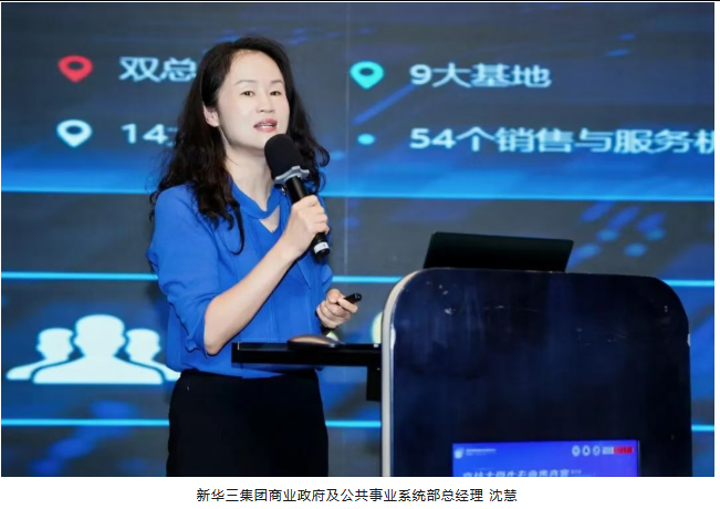 新华三集团商业政府及公共事业系统部总经理沈慧在此次会议上做了“数智为翼培育未来之力”的主题报告,分享了新华三依托自身产业优势及技术领先实力,在教育行业深化产学研协同的创新实践,以及在新华三强劲的人才需求态势下,“新华三杯”竞赛以赛促就业的数字化专业人才解决方案。