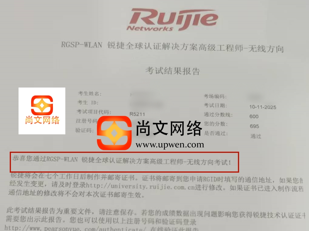 锐捷认证RGSP-WLAN无线方向战报,恭喜考试通过10.11日