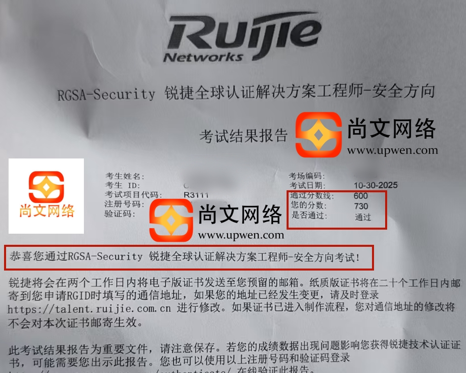 10.30日锐捷RGSA-Security安全方向战报,730分通过!