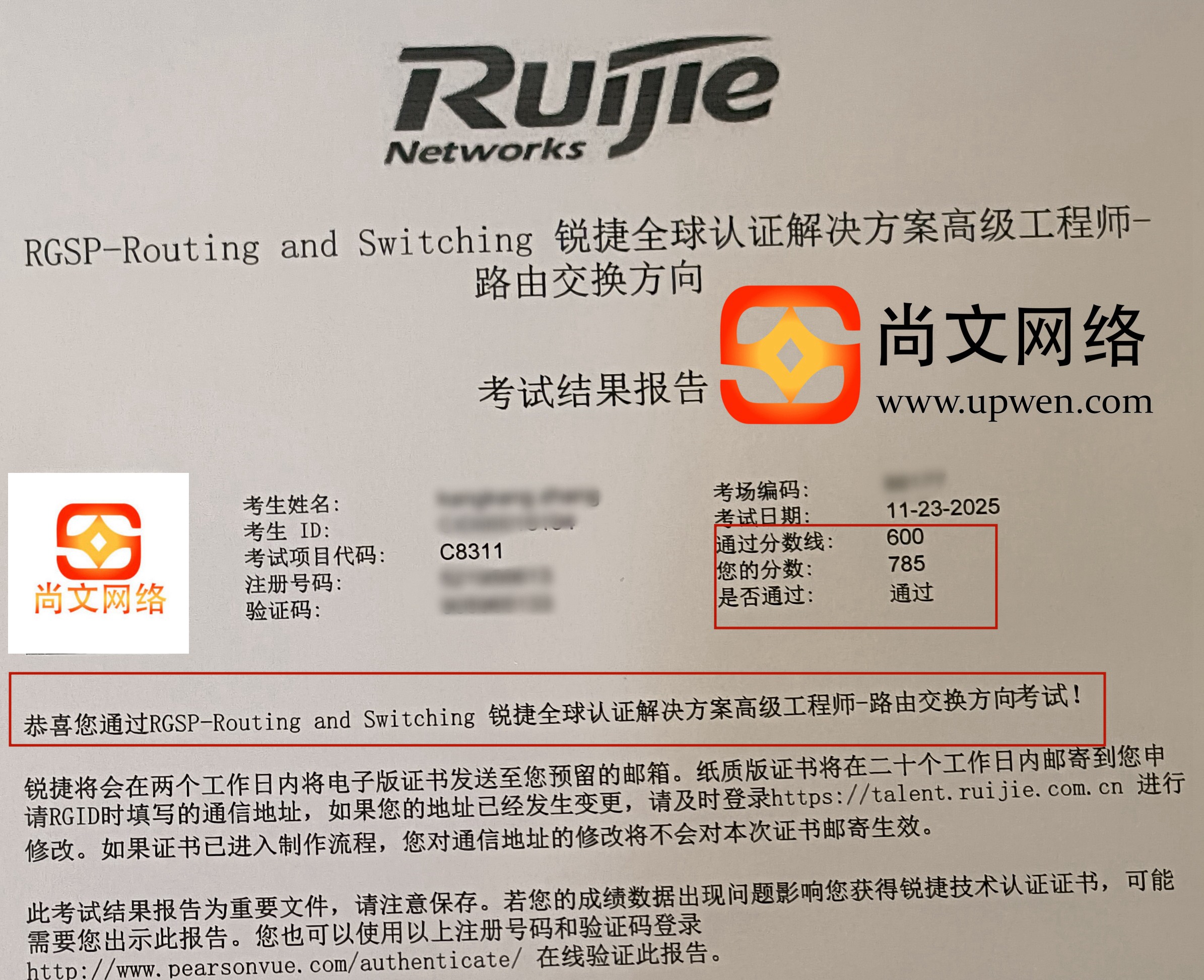 11.23日锐捷认证RGSP-RS方向战报,785高分通过~